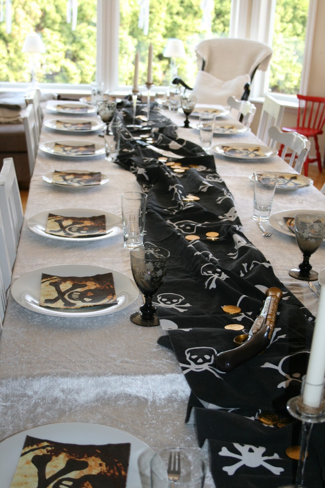 Godgutten vår ble feiret igår med familie og venner, pølser og kake og skikkelig sjørøverfest!! Han fikk ny stor seng, og masse annet fint, og koste seg fra morgen til (seint på) kveld.